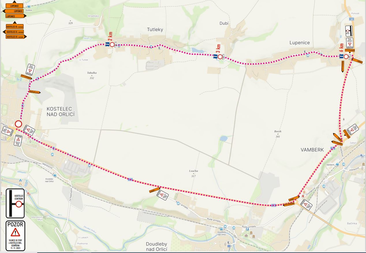 Objízdná trasa III31810-k UZ Kostelec nad Orlicí III/3189